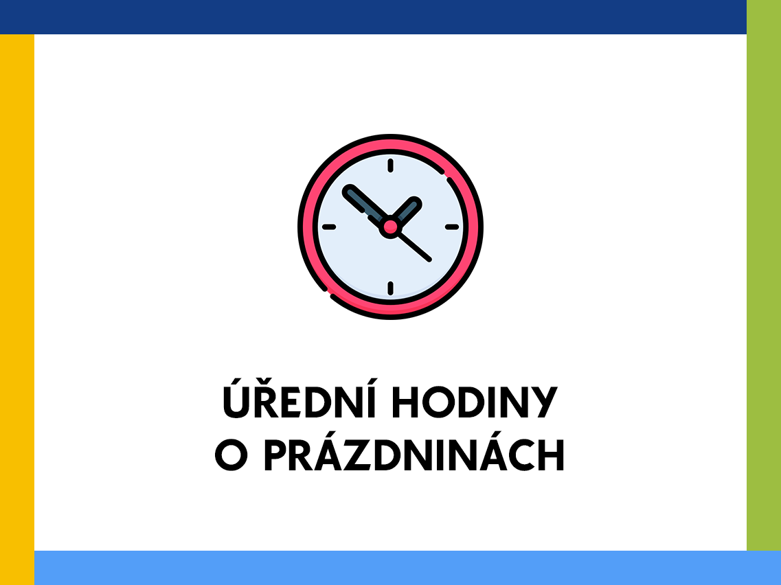 - 1. 7. (9 - 10:00) - 9. 7. (9 - 10:00) - 27. 8. (8 - 9:00) - 28. a 29. 8. po předchozí telefonické domluvě